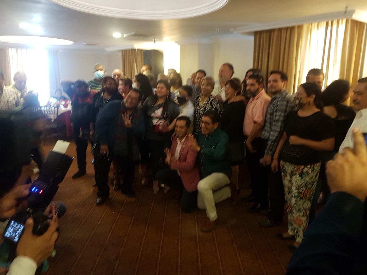 Durante el desayuno los morenistas recorrieron cada una de las mesas y saludaron personalmente a cada uno de los representantes de los medios informativos. y se tomarón la foto del recuerdo.