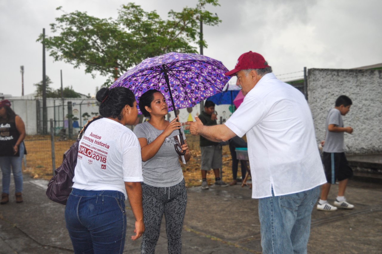 °Con todo y, lluvia el candidato de Morena recorrió el Fraccionamiento El Coyol.