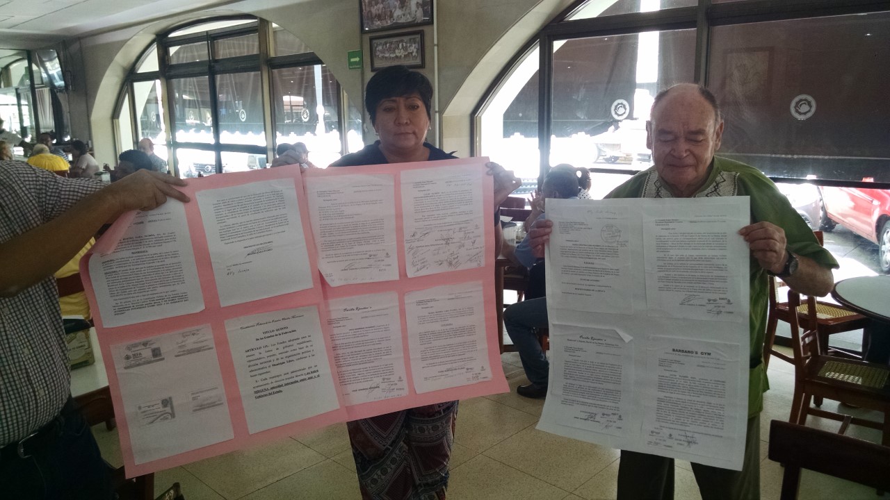 Veracruz,Ver.- 16 de Mayo 2018.- Vecinos del Barrio de la Huaca de la Ciudad d Veracruz encabezados por Edwuin Corona y Cepeda se manifestaron este miércoles en conocido café del Puerto de Veracruz en protesta porque se frene la destrucción del bulevar Manuel Avila Camacho.