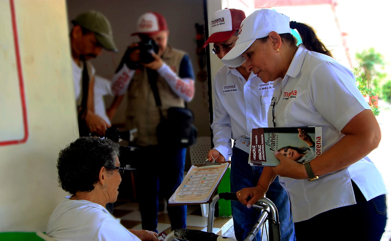 En su visita Rocío Nahle estuvo acompañada por el también candidato al Senado, Ricardo Ahued así como por el abanderado a diputado federal por el distrito XIII, Eleuterio Arrieta, quienes convocaron a la gente a aplicar el «5 de 5» el primer Domingo de Julio.