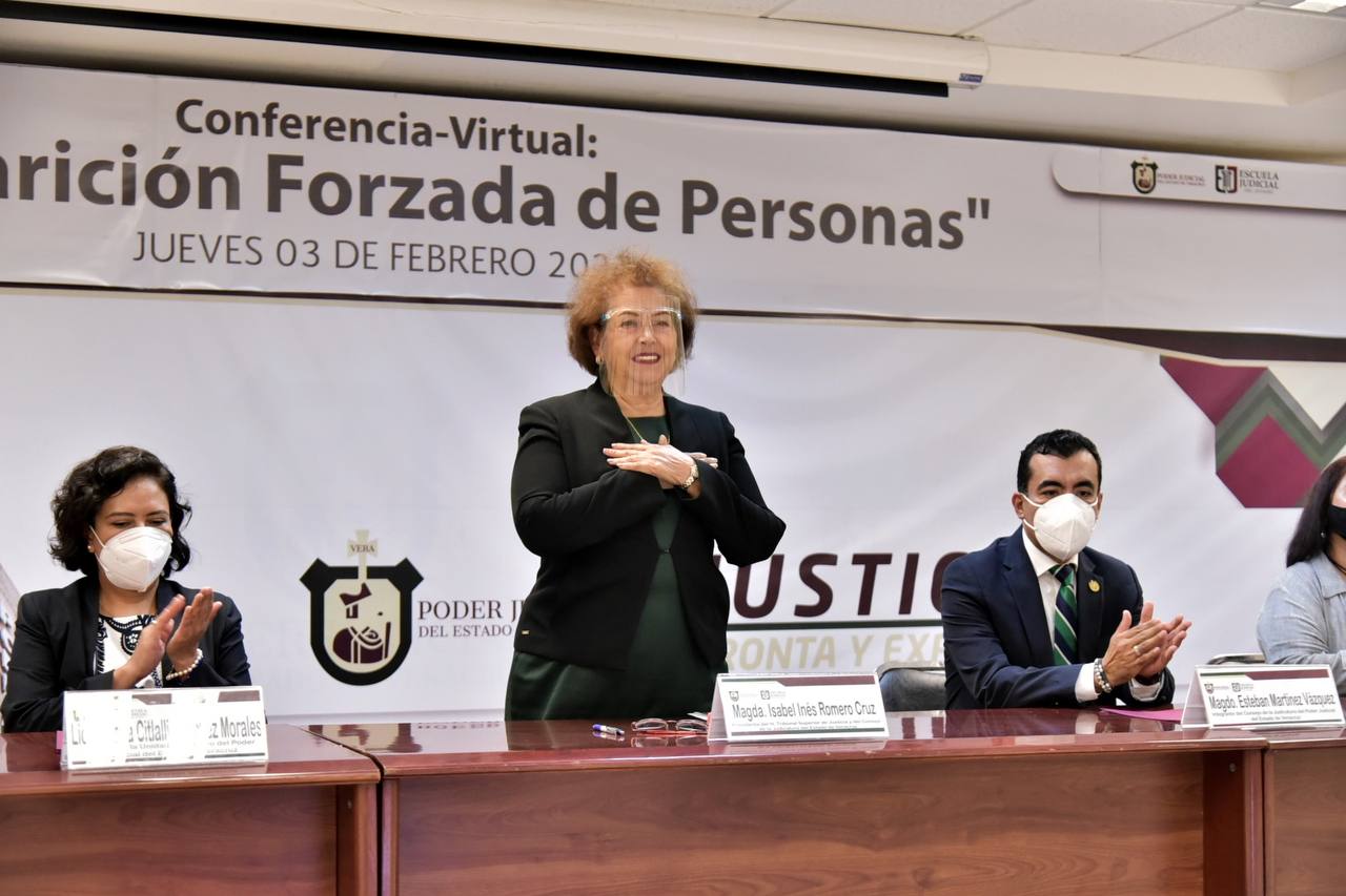 Xalapa, Ver., a 04 de febrero de 2022.- Por instrucciones de la Magistrada Isabel Inés Romero Cruz, Presidenta del Poder Judicial del Estado y del Consejo de la Judicatura, se llevó a cabo la conferencia virtual “Desaparición Forzada de Personas”, a cargo de la Escuela Judicial y, dirigida a los servidores públicos de la institución.