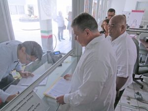 En las instalaciones de la Delegación Veracruz de la FGR, los secretarios de Gobierno, Eric Patrocinio Cisneros Burgos, y de Seguridad Publica, Hugo Gutiérrez Maldonado, se presentaron para interponer la denuncia.