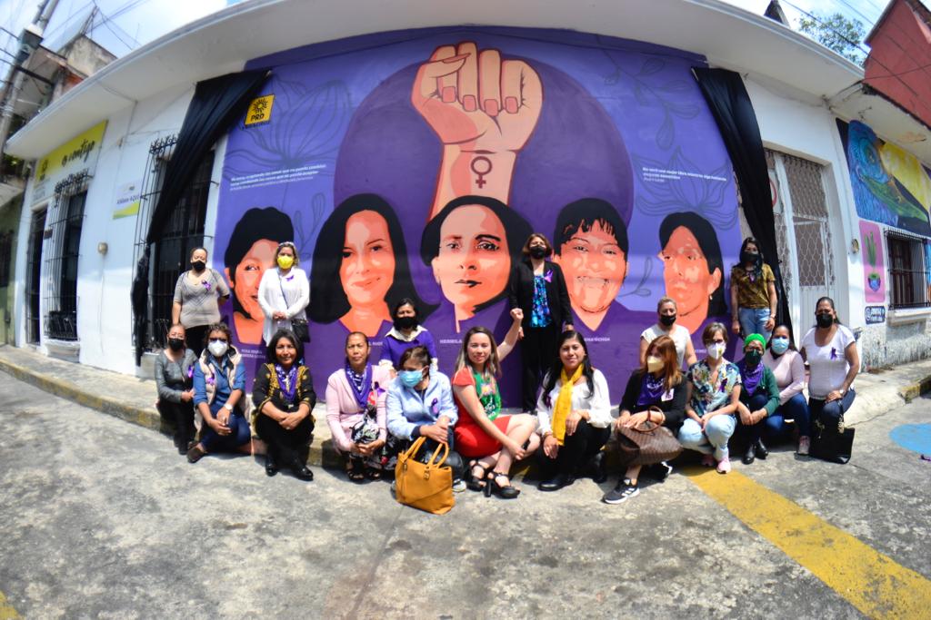 Posteriormente, en la sede de la dirección municipal de Xalapa, junto a integrantes de la misma, develaron un mural conmemorativo de la fecha elaborado por artistas xalapeños, en donde se recordó a mujeres como Rosa María Cabrera Lotfe, Hermila Galindo, Florisel Ríos, Regina Martínez y Digna Ochoa.