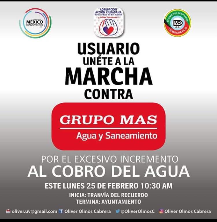 De acuerdo con el activista social la protesta se realiza este lunes a las 10;30 de la mañana, iniciando del tranvía del Recuerdo, hasta terminar frente al Ayuntamiento de Veracruz donde exigirán cesen los incrementos excesivos que se vienen dando en el cobro del vital líquido.