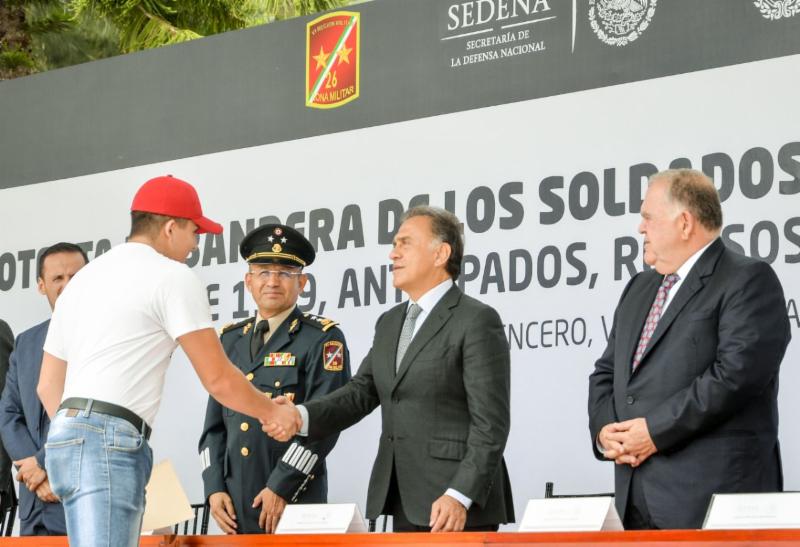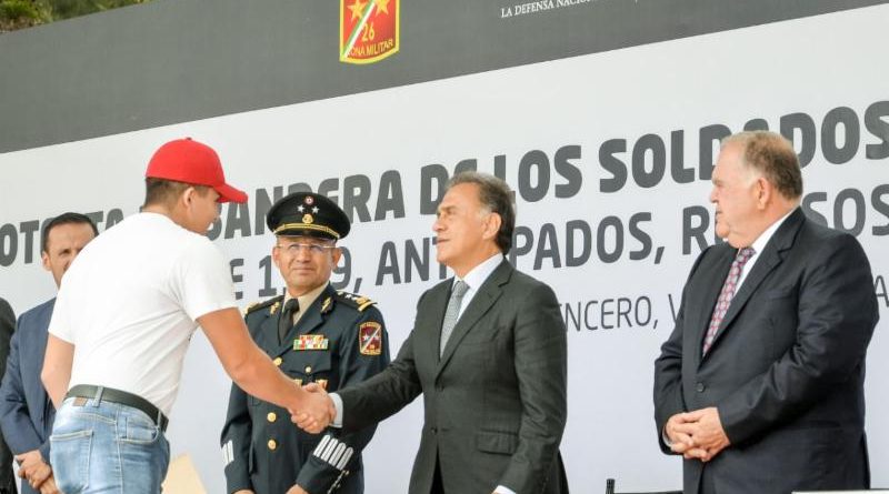 Emiliano Zapata, Ver., 5 de mayo de 2018.- El Gobernador del Estado presidió la Ceremonia de Protesta de Bandera de los Soldados del Servicio Militar Nacional, Clase 1999, Anticipados, Remisos y Mujeres Voluntarias, en las instalaciones de la 26ª Zona Militar.