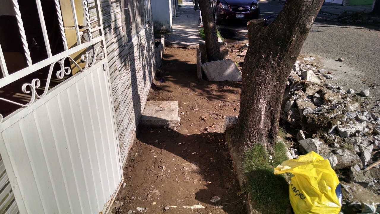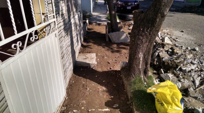 Veracruz,Ver.-1 de Junio de 2018.- Habitantes de Río Medio 3, al norte de la Ciudad de Veracruz se encuentran molestos con las autoridades municipales porque a más de veinte días que una cuadrilla de trabajadores del municipio paso reparando banquetas dañadas con la promesa de que en una semana se recogerían el escombro retirado de las calles éstas no han cumplido.
