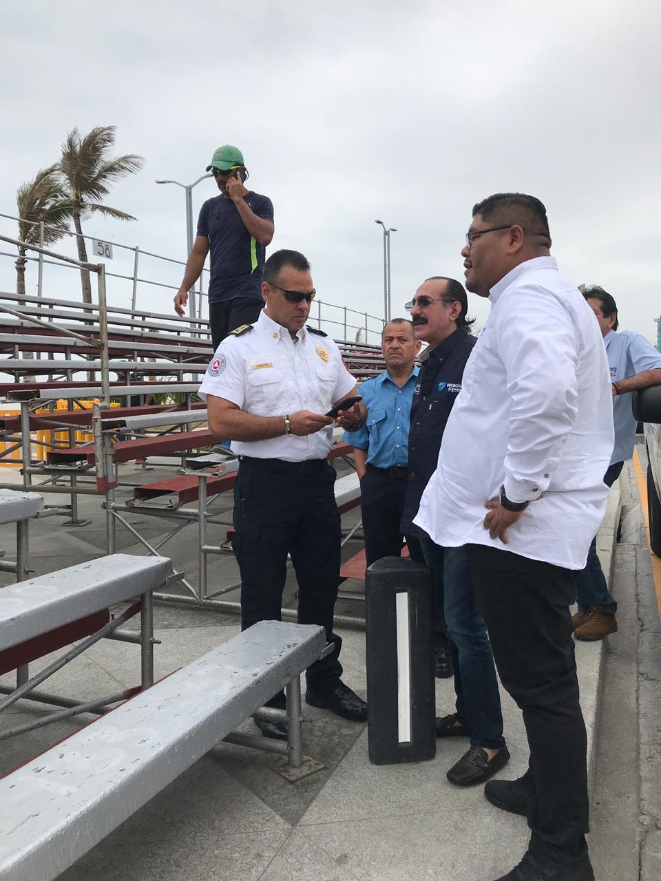 Veracruz, Ver., 18 de febrero de 2019.- A fin de garantizar la seguridad y el bienestar de las personas que asistirán al próximo Carnaval de los 500 años “El más alegre del mundo” que tendrá efecto del 27 de febrero al 05 de marzo de este año, la mañana de este lunes, autoridades municipales y estatales de Protección Civil, así como del comité organizador, realizaron el primer recorrido de supervisión de gradas instaladas en el bulevar Manuel Ávila Camacho.