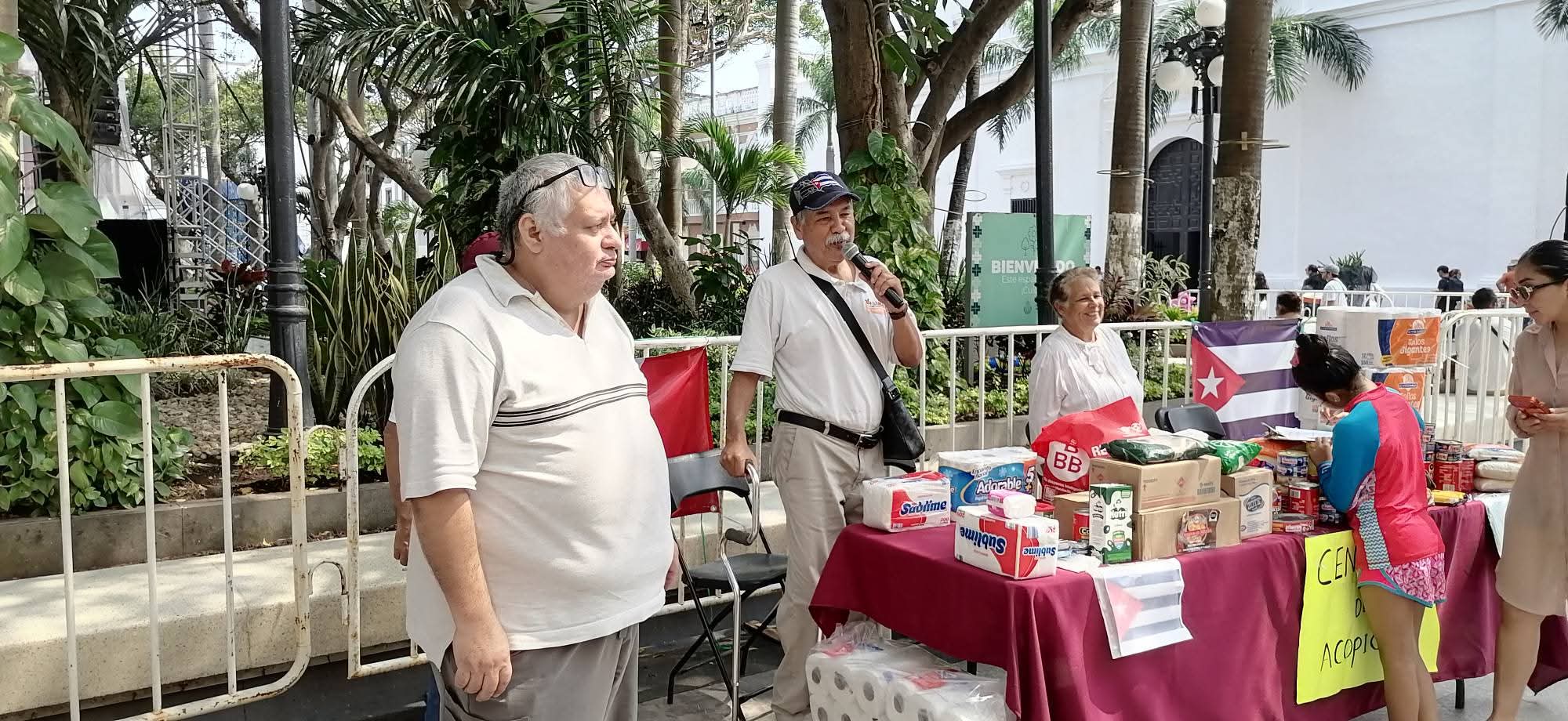 Veracruz, Veracruz, Ver.. A 14 de Febrero 2026.. Un grupo de ciudadanos veracruzanos encabezados por el DR. Víctor Jose Cuervo Max y Jaime Bautista se unieron con otros veracruzanos e instalaron un Centro de Acopio en el Zócalo de Veracruz con el fin de recolectar alimentos,medicinas y otros productos necesarios en apoyo al Pueblo Cubano quien en estos momentos atraviesa por una situación precaria derivado de las medidas unilaterales tomada por el Gobierno de los Estados Unidos.