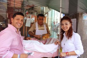 Zarrabal Ferat visitó los establecimientos comerciales del centro histórico de la ciudad, saludó a las y los ciudadanos que recorrían las calles escuchando sus peticiones y solicitándoles el apoyo para que el próximo 1 de julio le brinden su voto de confianza.