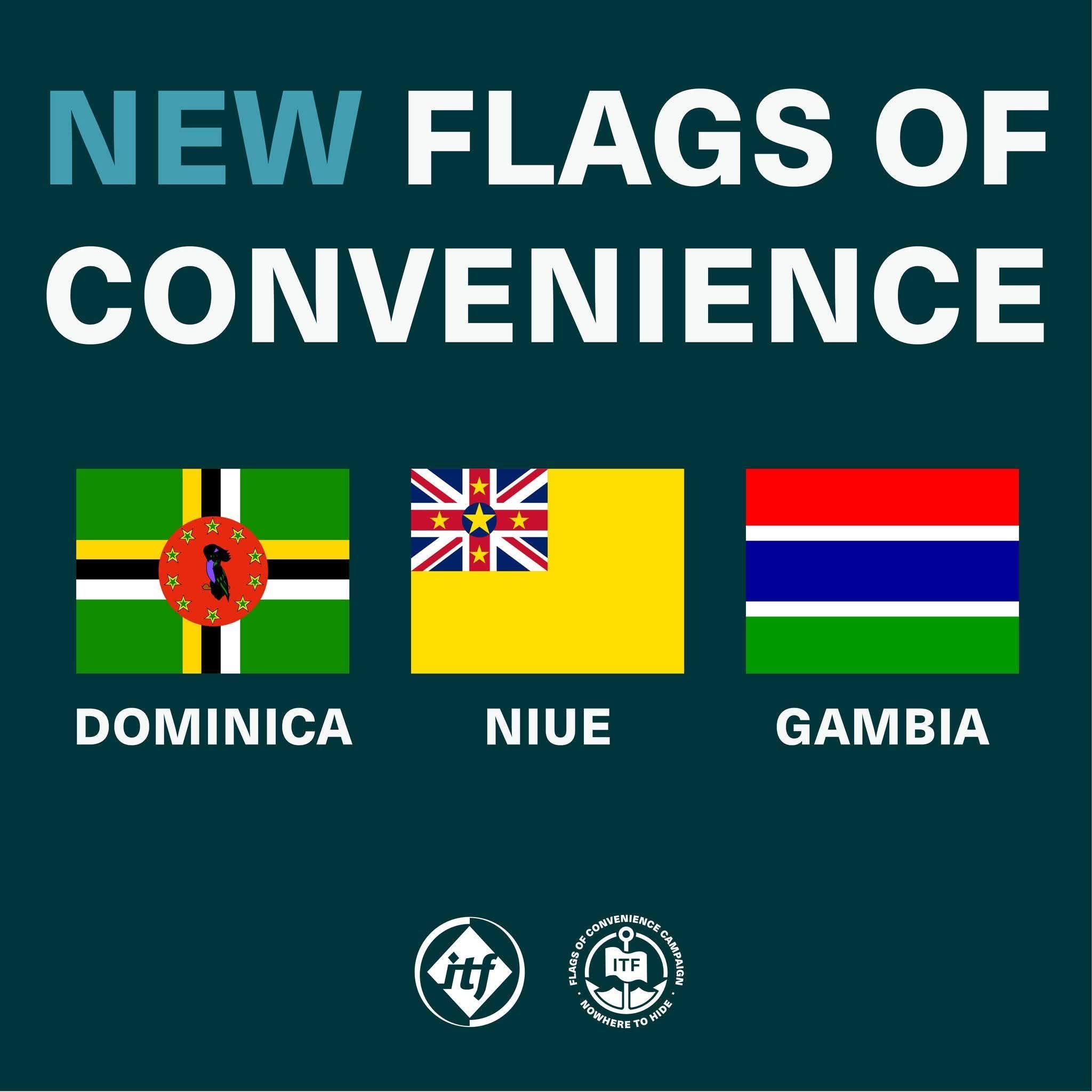 LONDRES.. A 28 de Noviembre de 2025.. La Federacion Internacional de Los Trabajadores del Transporte ( ITF) ha designado a *Dominica, Gambia y Niue* son las últimas incorporaciones a la lista de Banderas de Conveniencia (BDC) de la ITF, lo que eleva el total a *48.*