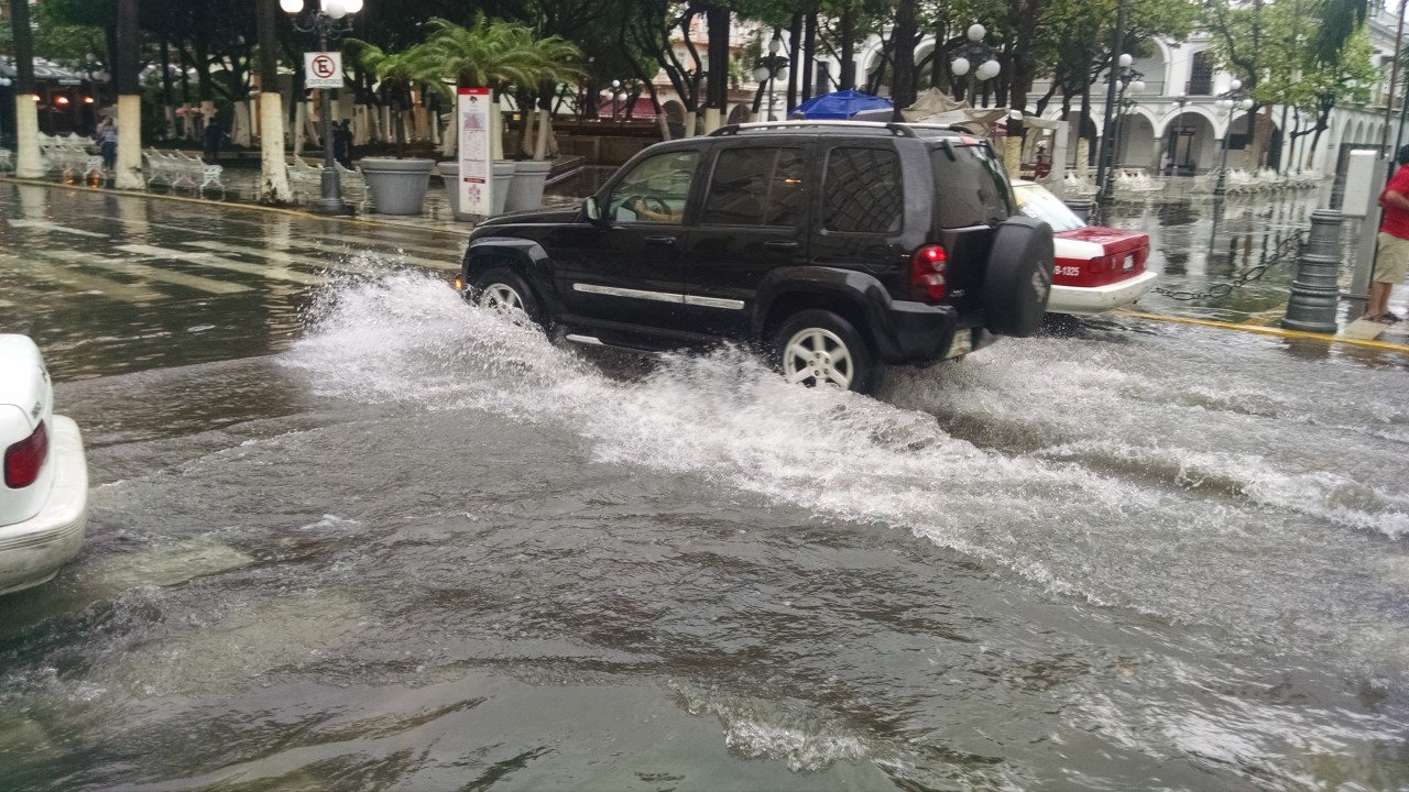Esto aunado a que los drenajes que se encuentran azolvados provoca que las inundaciones en calles céntricas de Veracruz cada vez son más frecuentes.