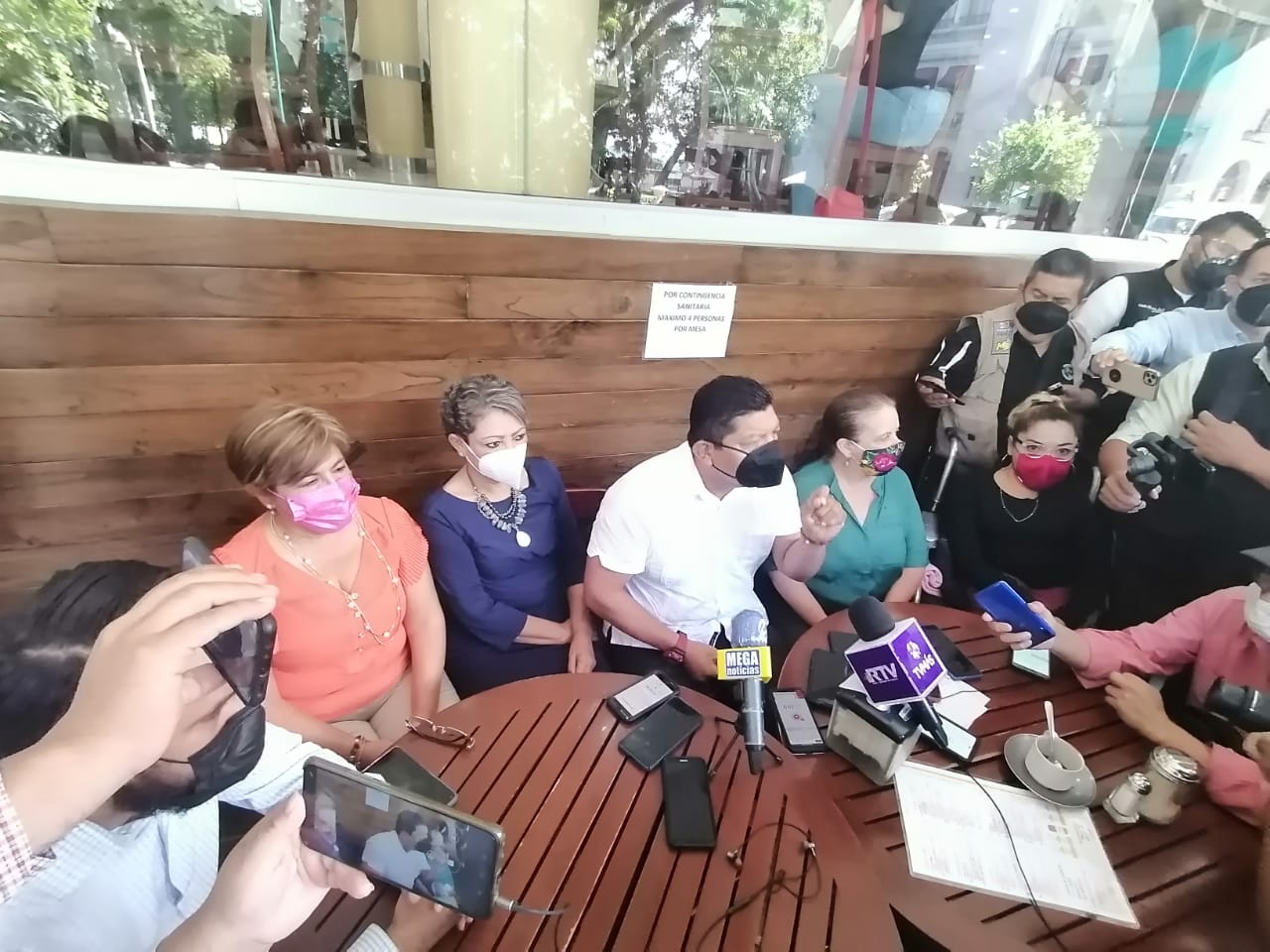 El legislador encabezó la rueda de prensa que ofrecieron los diputados electos y reelectos en la capital Xalapa, quienes conformarán la LXV Legislatura: Ivonne Cisneros Luján, Xalapa; Tomás Humberto Segura Rivera; Xalapa, Martha Rosa Morales Romero, Córdoba; Mónica Herrera Villavicencio, Martínez de la Torre; y Rosa María Hernández Espejo; Veracruz.