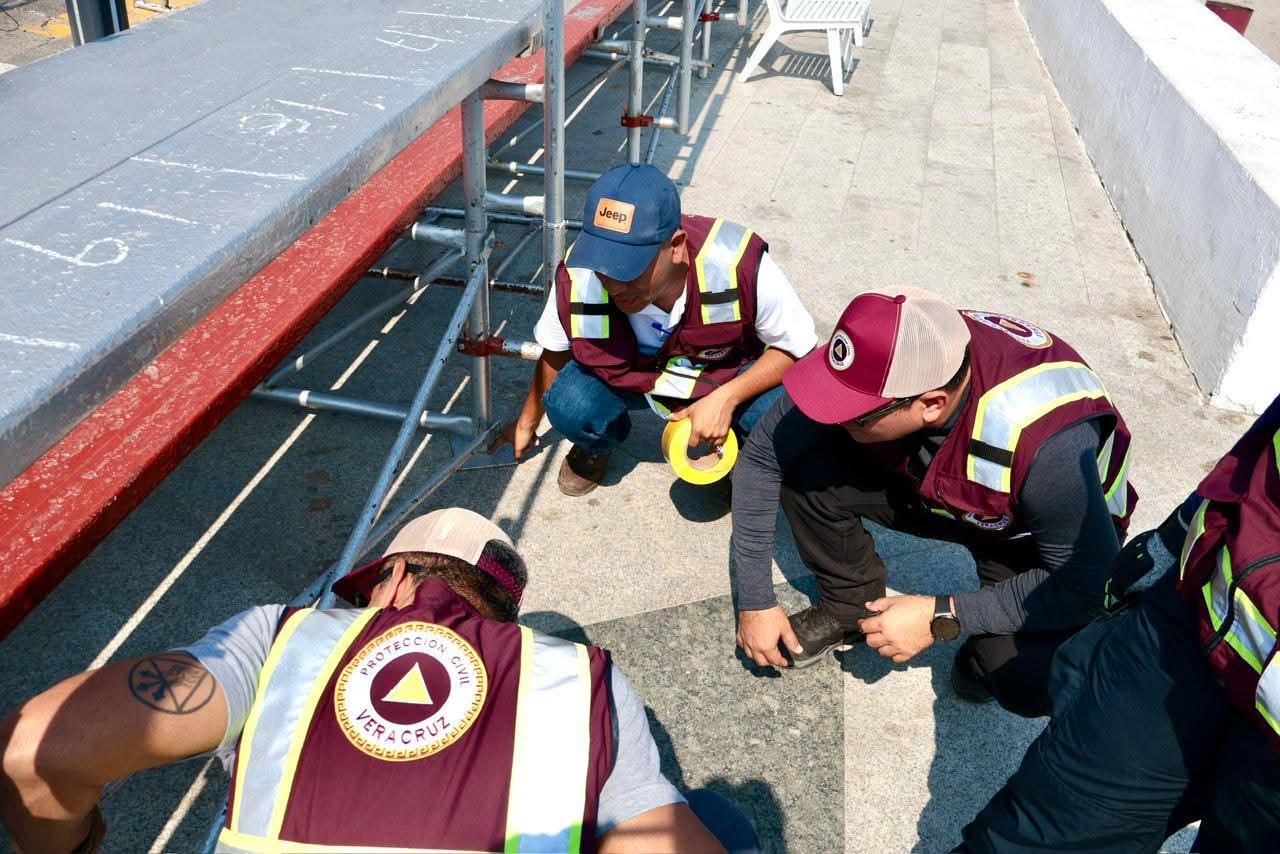La dirección de Protección Civil municipal de Veracruz realizó una supervisión en los 3.5 kilómetros de gradas instaladas a lo largo del bulevar Ávila Camacho, con la finalidad de verificar que cumplan con las condiciones de seguridad establecidas y así prevenir riesgos durante los paseos del Carnaval de Veracruz 2026.
