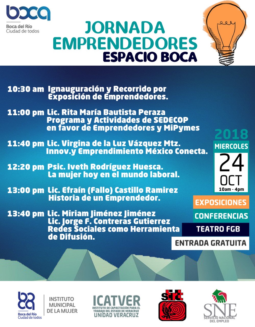De acuerdo con el programa:La licenciada Rita María Bautista Peraza fue quien se encargó de hablar sobre el programa y, las actividades de Sedecop en favor de emprendedores y, MiPymes.(11:oo horas).