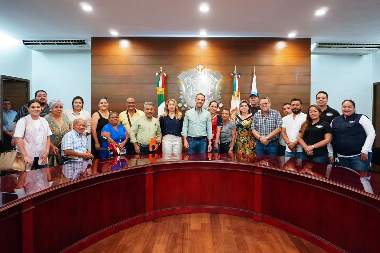 BOCA DEL RIO,VER.—El Alcalde de Boca del Río, Juan Manuel Unánue Abascal, recibió en Sala de Cabildo a comerciantes de la cabecera municipal, con quienes coordinará proyectos en beneficio de la económica local.