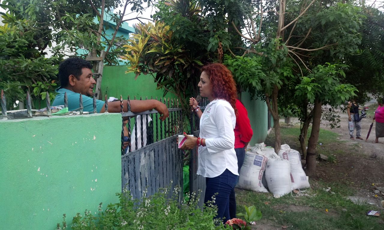 H. Veracruz, Ver., a 12 de Junio de 2018.- Por segunda vez en este mes, la candidata del PRI a Diputada Federal por el Distrito IV, Sheila Flores Tenorio visitó a los vecinos de la colonia Las Amapolas 2, caminó, saludó y escuchó a los ciudadanos quienes la llevaron a una de las zonas más complejas en cuanto a falta de servicios como: la pavimentación, falta de luminarias y en esta temporada de lluvias el estancamiento de aguas pluviales que se podía ver a simple vista.