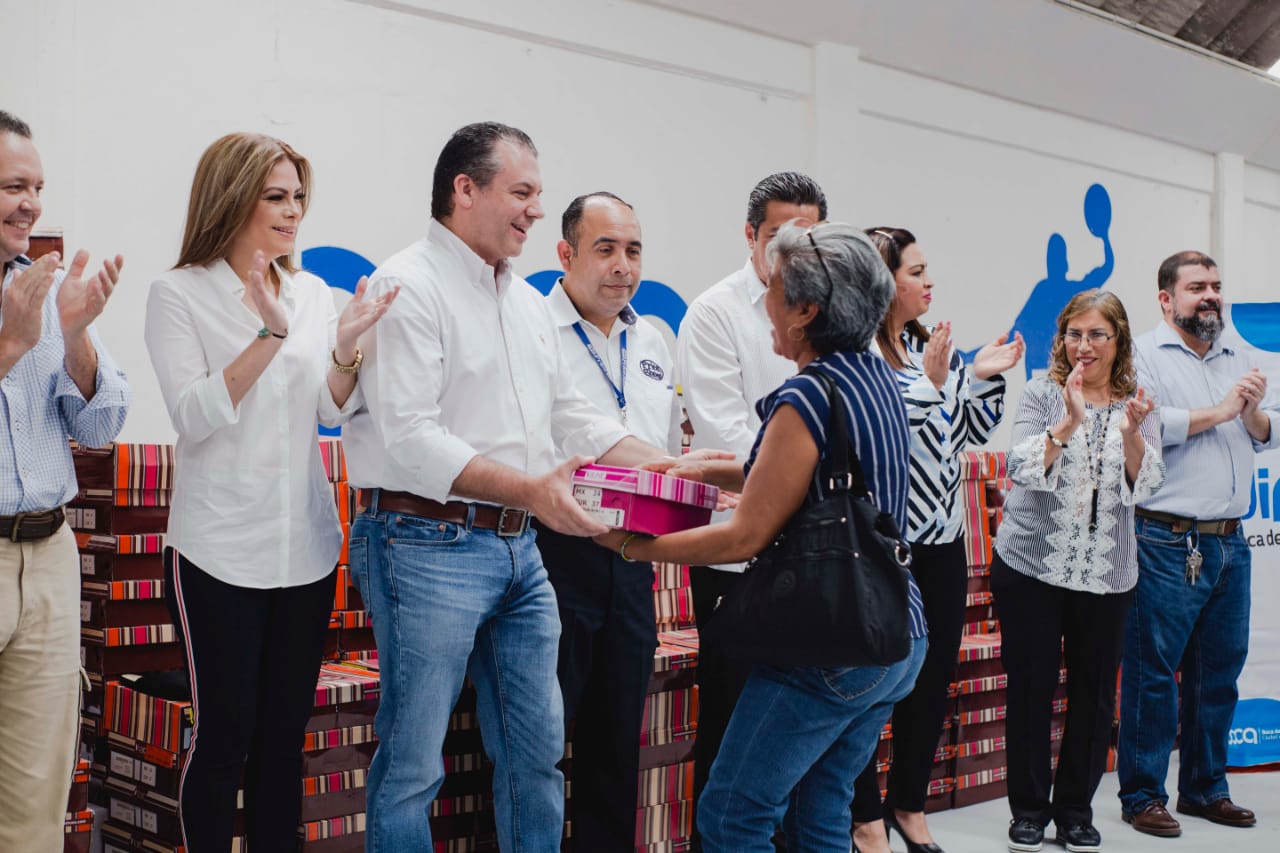 Morelli hizo un reconocimiento especial a Alberto Lechuga por el importante donativo que hicieron, así como a su esposa, Karla Robles, quien impulsó este proyecto: la primera Feria del Calzado Femenil DIF-Price Shoes, en la que estamos donando 4,619 pares de zapatos a mujeres boqueñas.