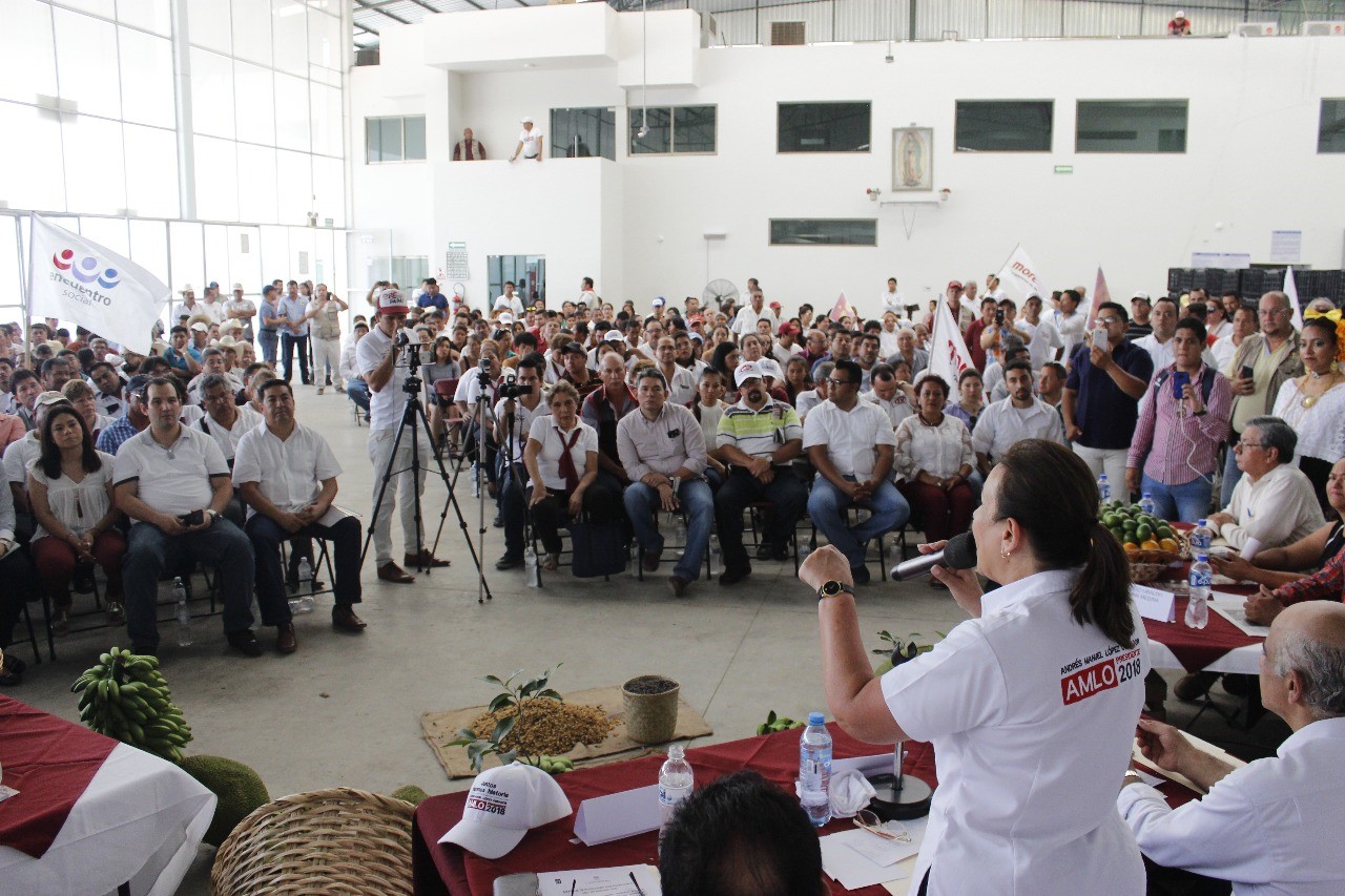 Martínez de la Torre, Ver. 14 de Abril 2018.-En su visita al distrito con Cabecera en Martínez de la Torre a donde recorrió el Mercado Municipal y encabezó un Foro con el Sector Productivo, la candidata al Senado de la República por la alianza «Juntos Haremos Historia» Rocío Nahle García, aseguró categóricamente que una de sus propuesta torales es evitar a toda costa que sea privatizada el agua.