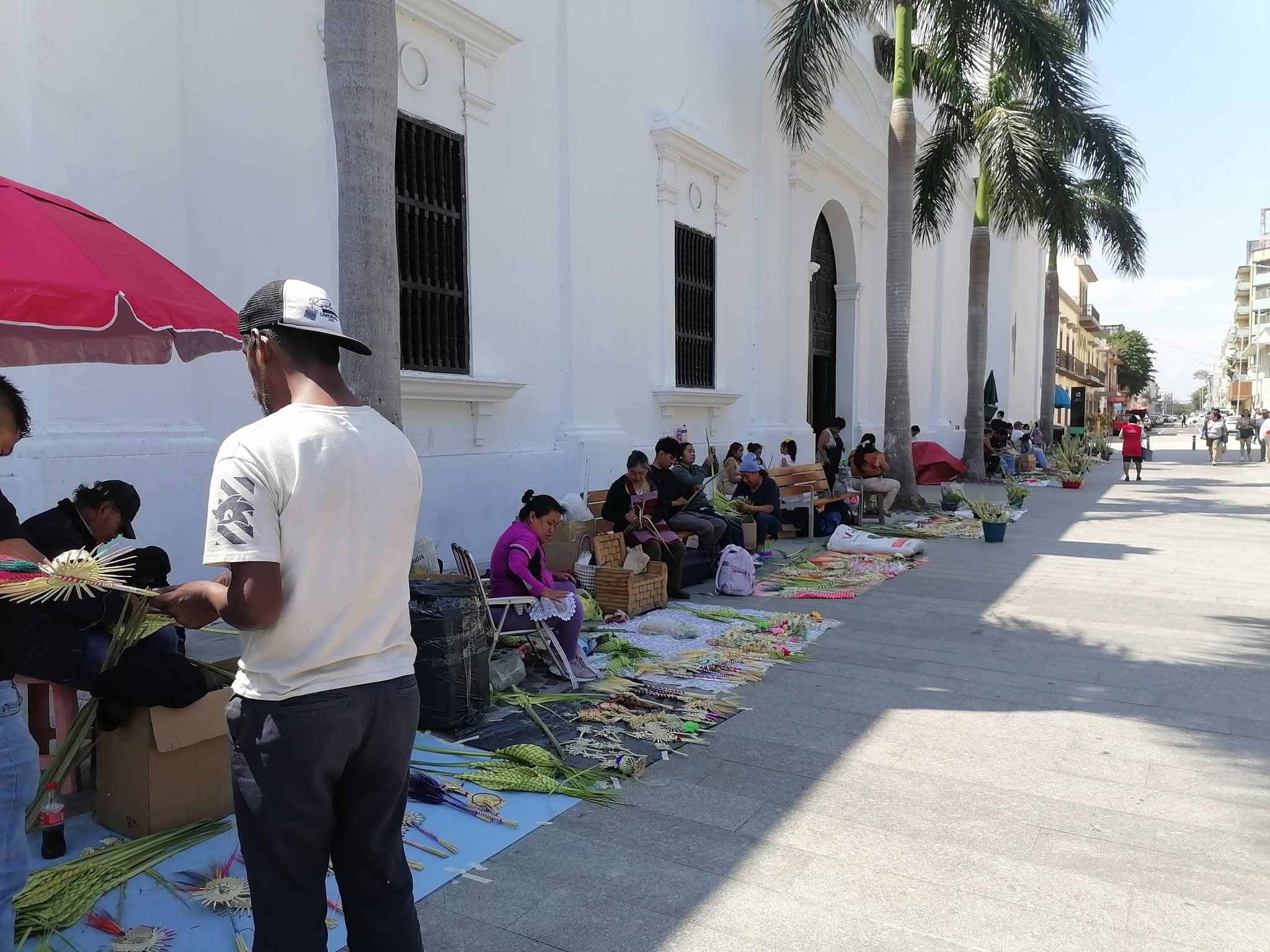 Vendedores de palmitas sitian la Iglesia la Catedral de Veracruz.