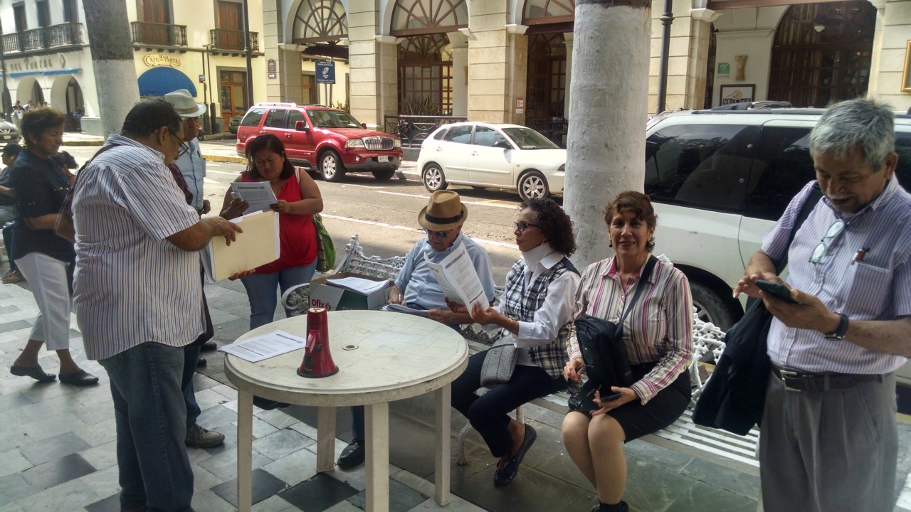 Veracruz,Ver.- a 11 de febrero 2019.- En menos de dos días el módulo de quejas instalado en el Zócalo de Veracruz contra los abusos que comete el Grupo MAS con los veracruzanos ha recibido más de un centenar de quejas por escrito.-